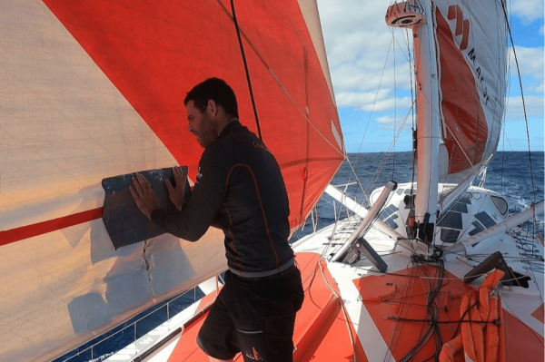 « Nous sommes conscients, Pierre et moi, que cette course n’a plus du tout le même sens. Ce départ quasiment deux jours après notre arrivée à Lorient nous a fait mal. Les conditions ont été très difficiles ensuite. Nous avons eu plusieurs fronts à passer, au près et dans une mer chaotique. Il a fallu nous remobiliser avec Pierre pour effacer cette terrible frustration. Moralement, ça a été compliqué à avaler. Toute l’année nous nous entraînons pour ça et d’un coup tout se dérobe. J’ai du mal à accepter cette avarie sur la grand-voile. Elle était quasiment neuve. Nous avons enchainé les petits problèmes techniques, et malheureusement une latte sur notre J2 est sortie de son emplacement, causant une déchirure. Nous avons fait une réparation mais nous n’avons pas encore déroulé cette voile. Je ne sais pas encore si la réparation va tenir », confie Isabelle.